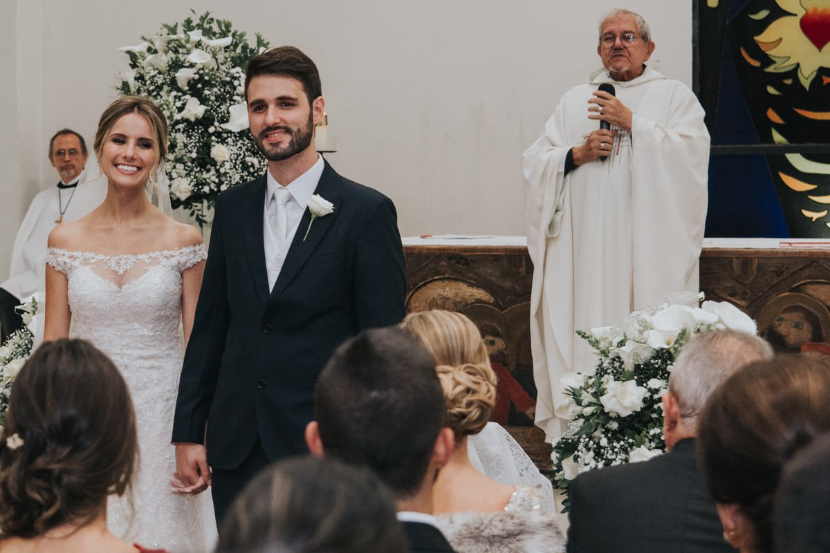 Nós já trouxemos para vocês como foi o ensaio pré-casamento da Aline e do Dudu, lá no Rola Moça. Se não viu ainda, corre lá pra ver! E hoje é dia de trazer as fotos do casamento, que rolou lá no Caravaggio Eventos! Um espaço clássico, repleto de lindas obras de arte para combinar com este casamento clássico. Além da festa super animada, a cerimônia rolou lá na Mãe da Igreja, no Bairro Vila Paris. E teve todo um toque especial. O padre Danilo, hoje falecido, era amigo das duas famílias. Além disso, acompanhou Aline e Dudu muito antes deles se conhecerem. Na época do casamento, o padre Danilo já não celebrava mais as missas da Mãe da Igreja. Mas foi convidado especialmente para esse casamento! Uma honra para o casal poder contar com uma presença tão especial, né?