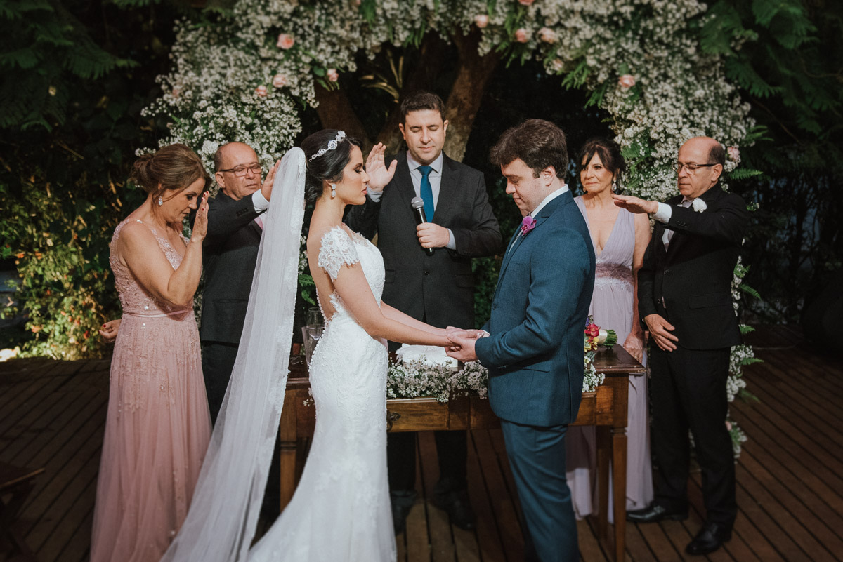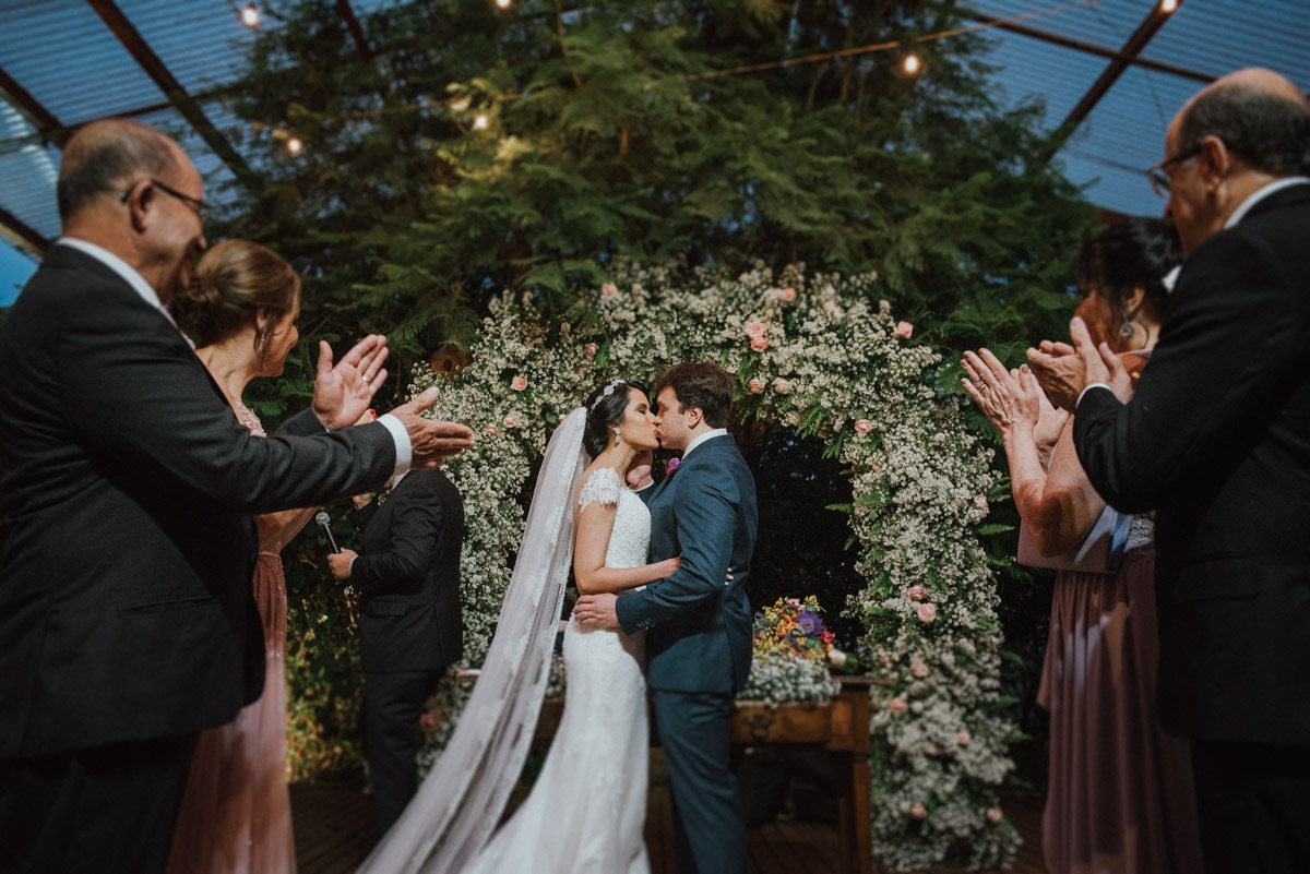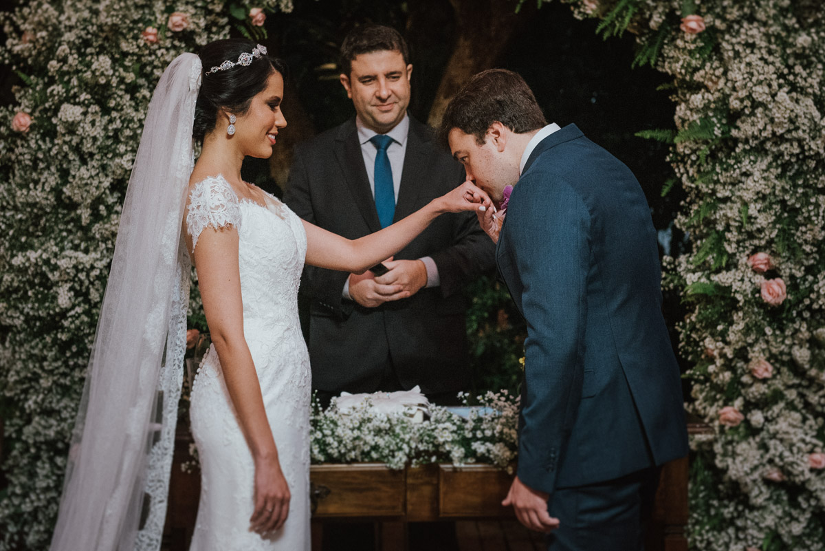 - Cerimônia ao ar livre: Oficiada pelo querido Cláudio Toledo, a troca de votos aconteceu sob um céu generoso, com os convidados emocionados pelas palavras sinceras do casal.