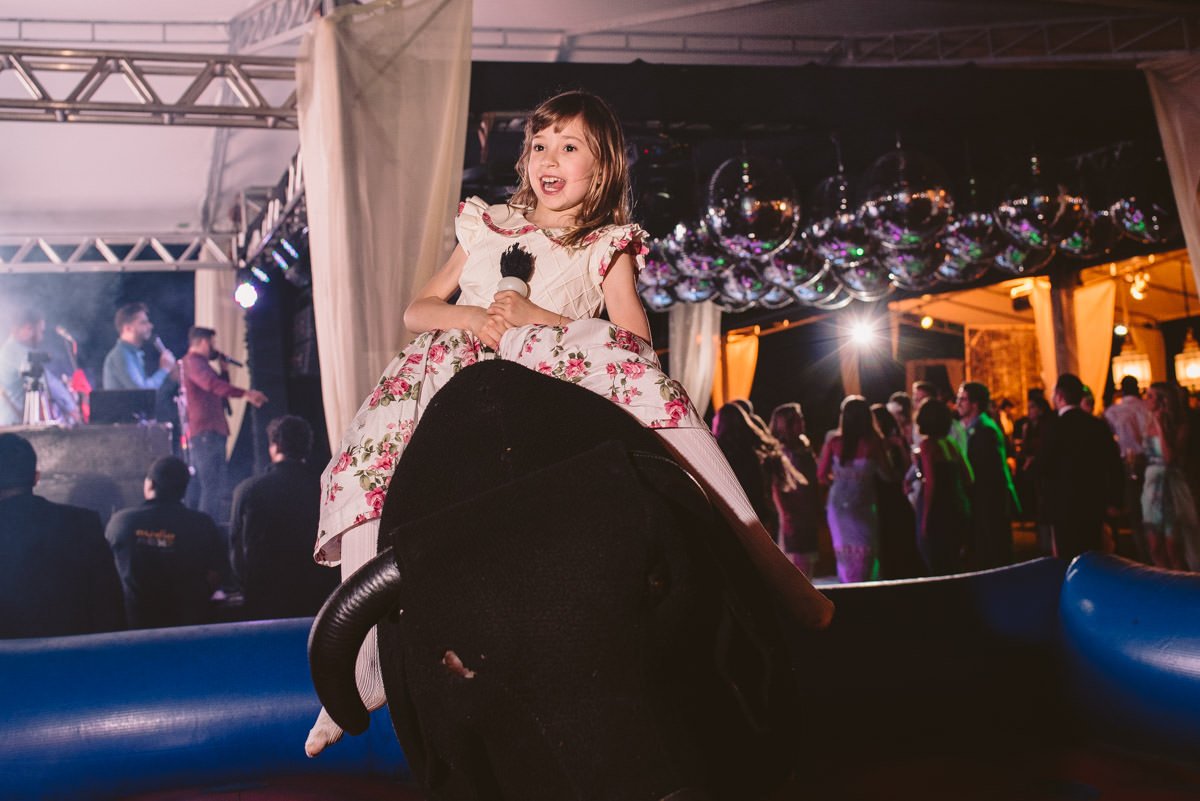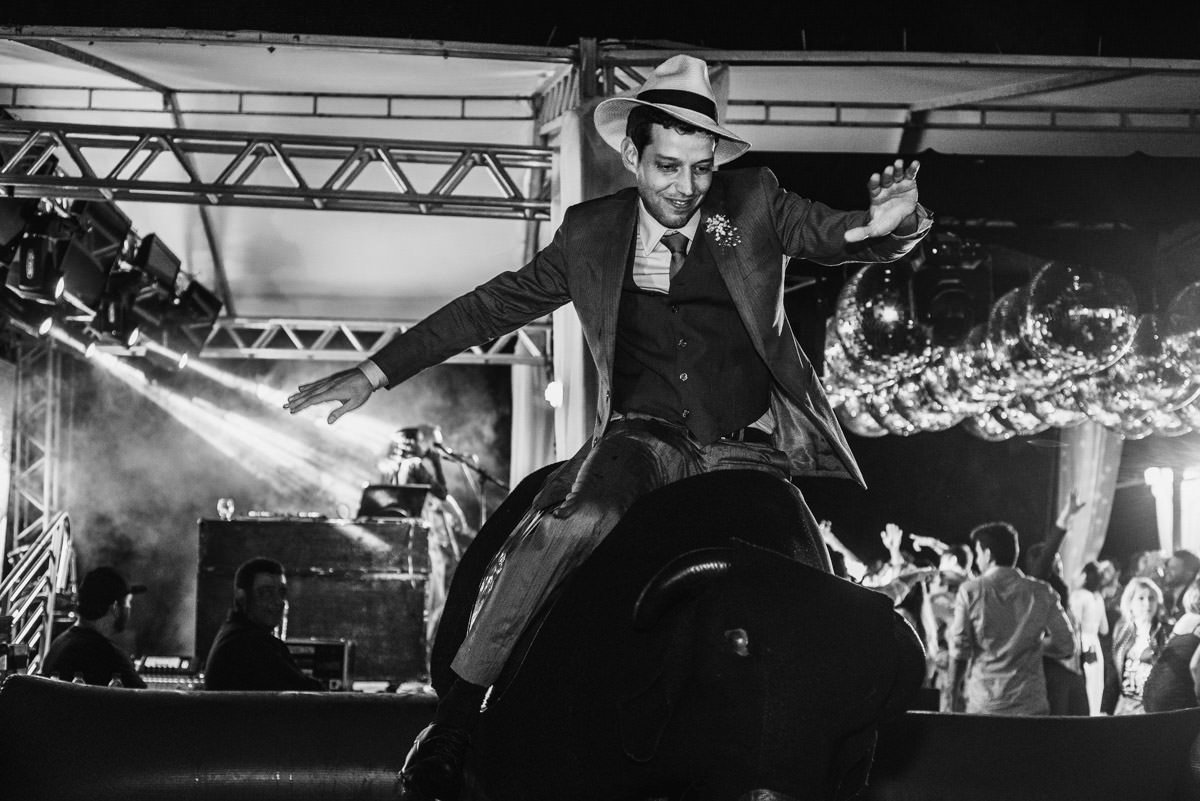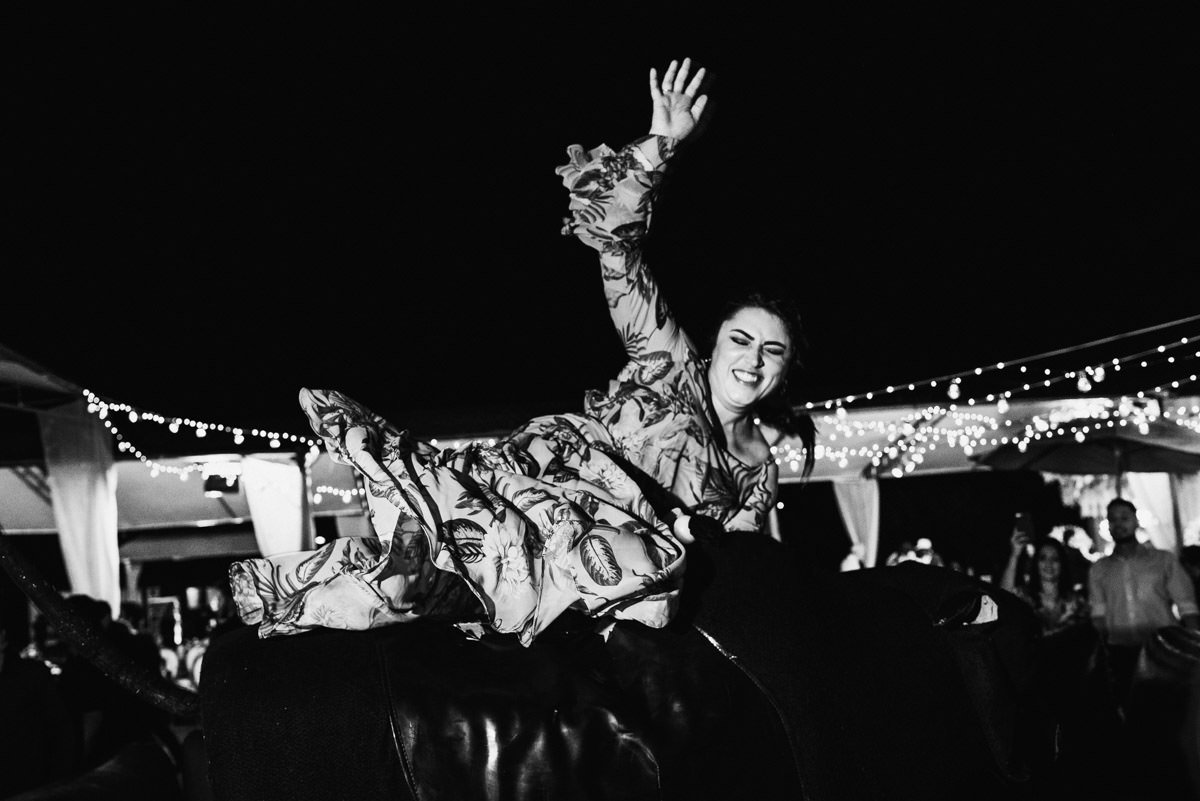 Como dá pra ver nas fotos, aconteceu tudo que a Mari e o Renan tinham prometido pra gente – e muito mais! Dois making of’s lindos e divertidos, uma cerimônia emocionante, com direito à homenagem pra mãe do Renan e uma baita de uma festa animada! Fala sério, quem aí já viu um casório com touro mecânico?!