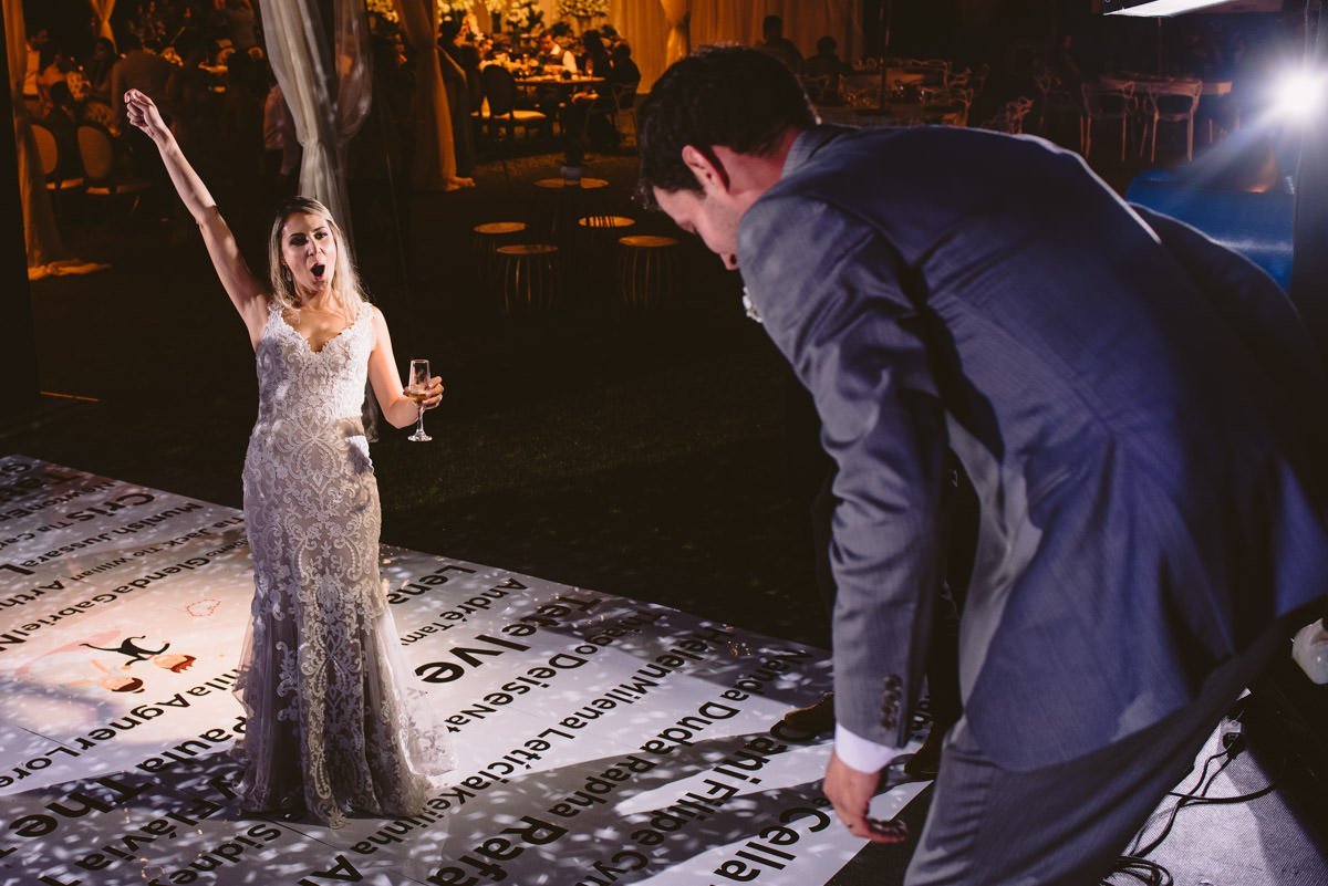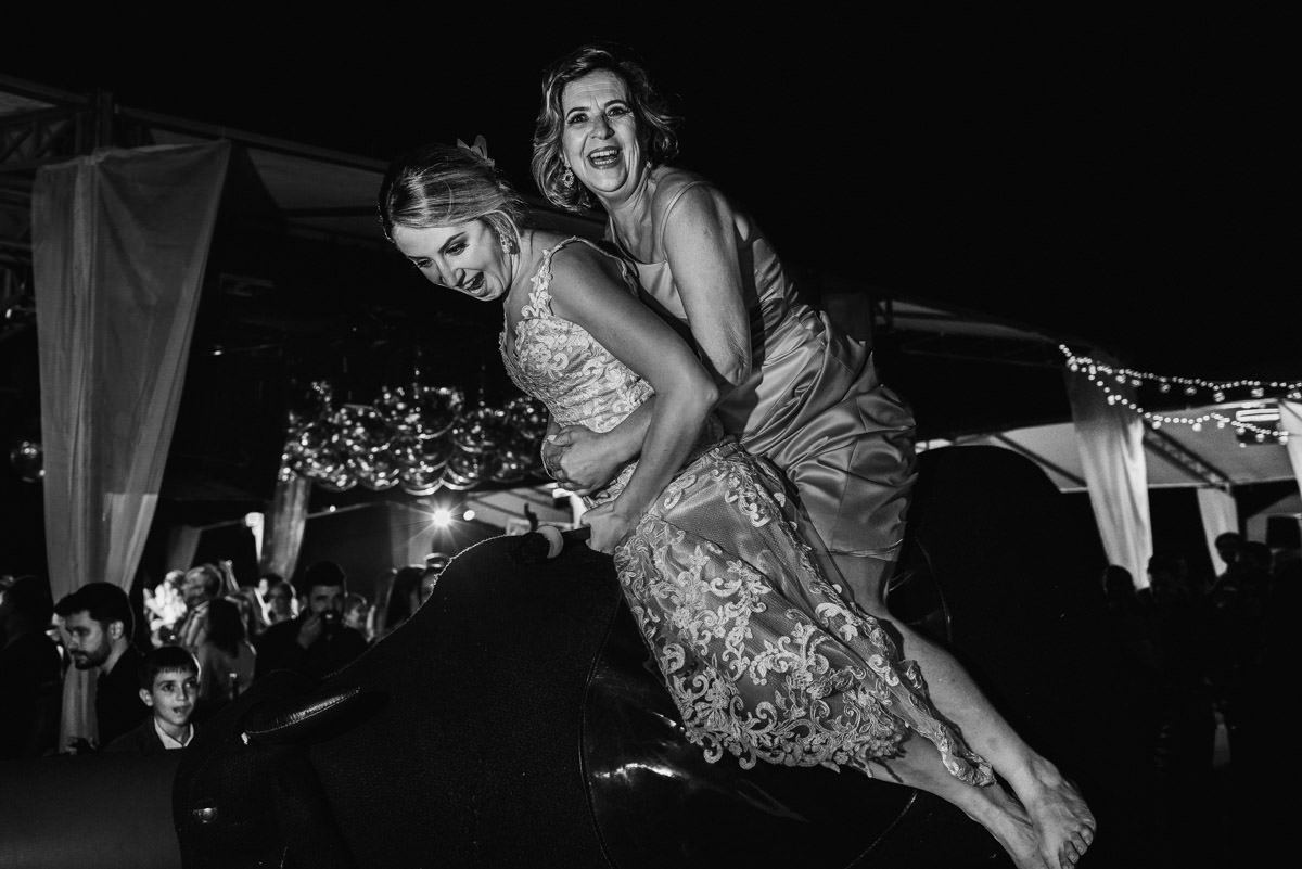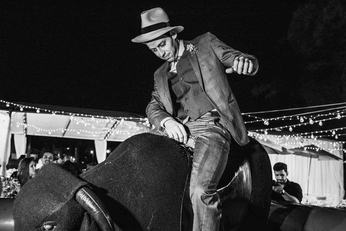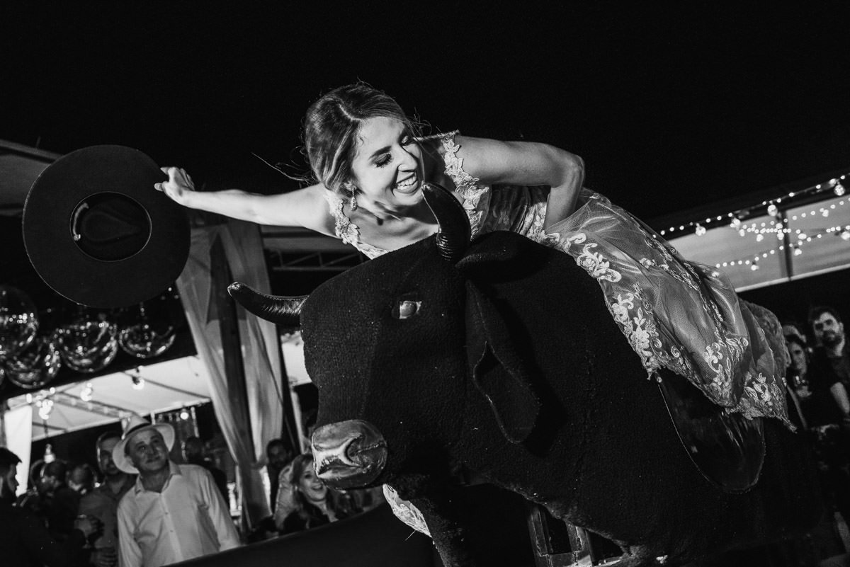 Como dá pra ver nas fotos, aconteceu tudo que a Mari e o Renan tinham prometido pra gente – e muito mais! Dois making of’s lindos e divertidos, uma cerimônia emocionante, com direito à homenagem pra mãe do Renan e uma baita de uma festa animada! Fala sério, quem aí já viu um casório com touro mecânico?!