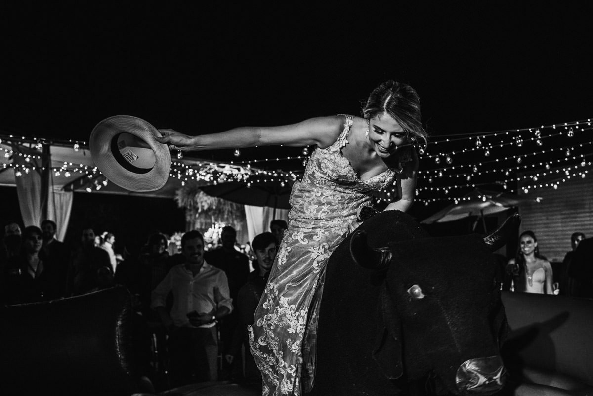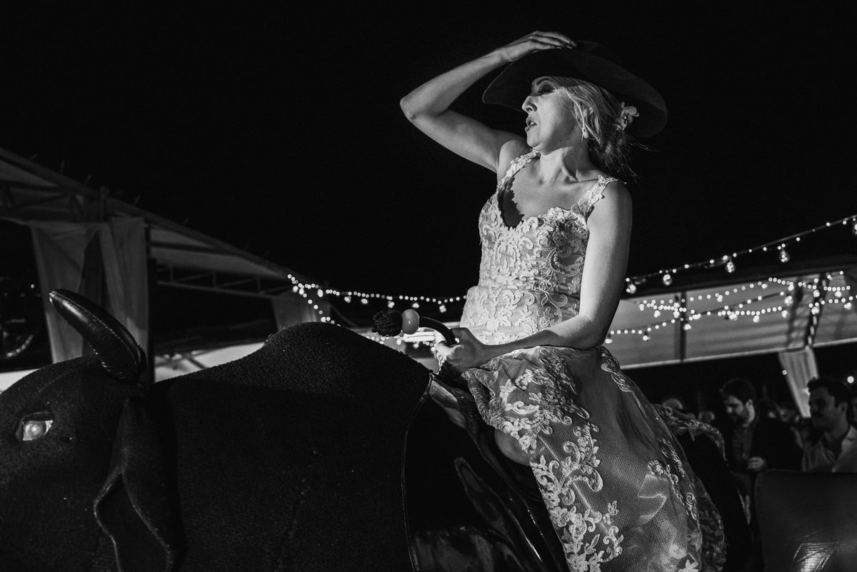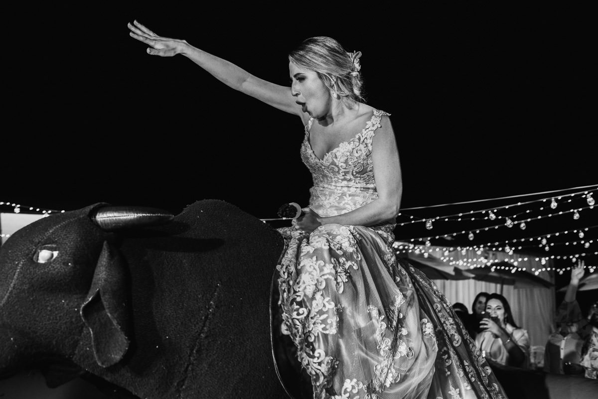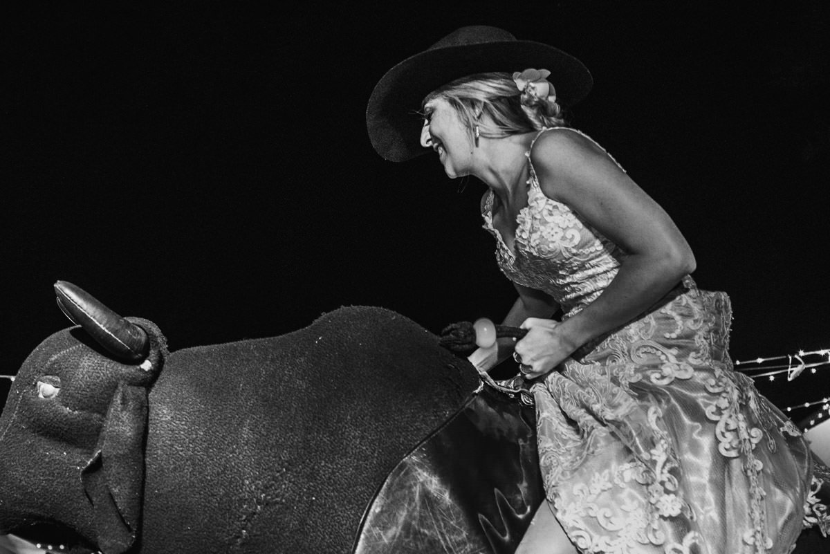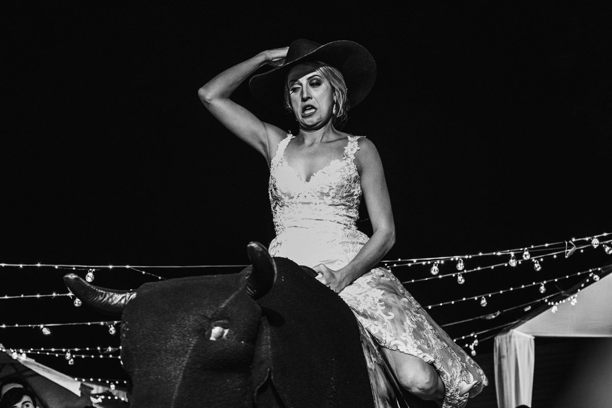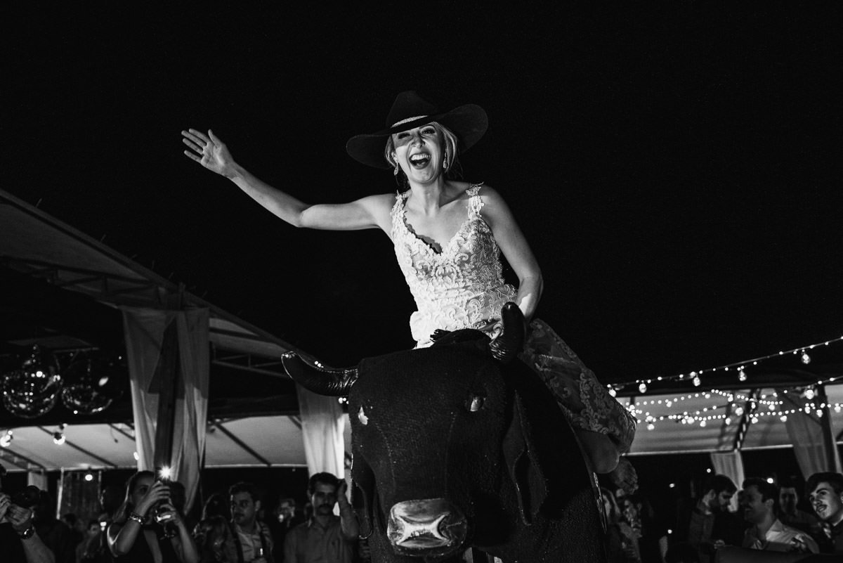 Quando rolou o ensaio de pré-casamento da Mari e do Renan, ficamos super ansiosos pro dia do casamento em Itabira, já que eles tinham contado tudo que ia rolar no dia. Touro mecânico, Mari equilibrando um copo na cabeça, “bazuca” de fumaça e, claro, muita animação.