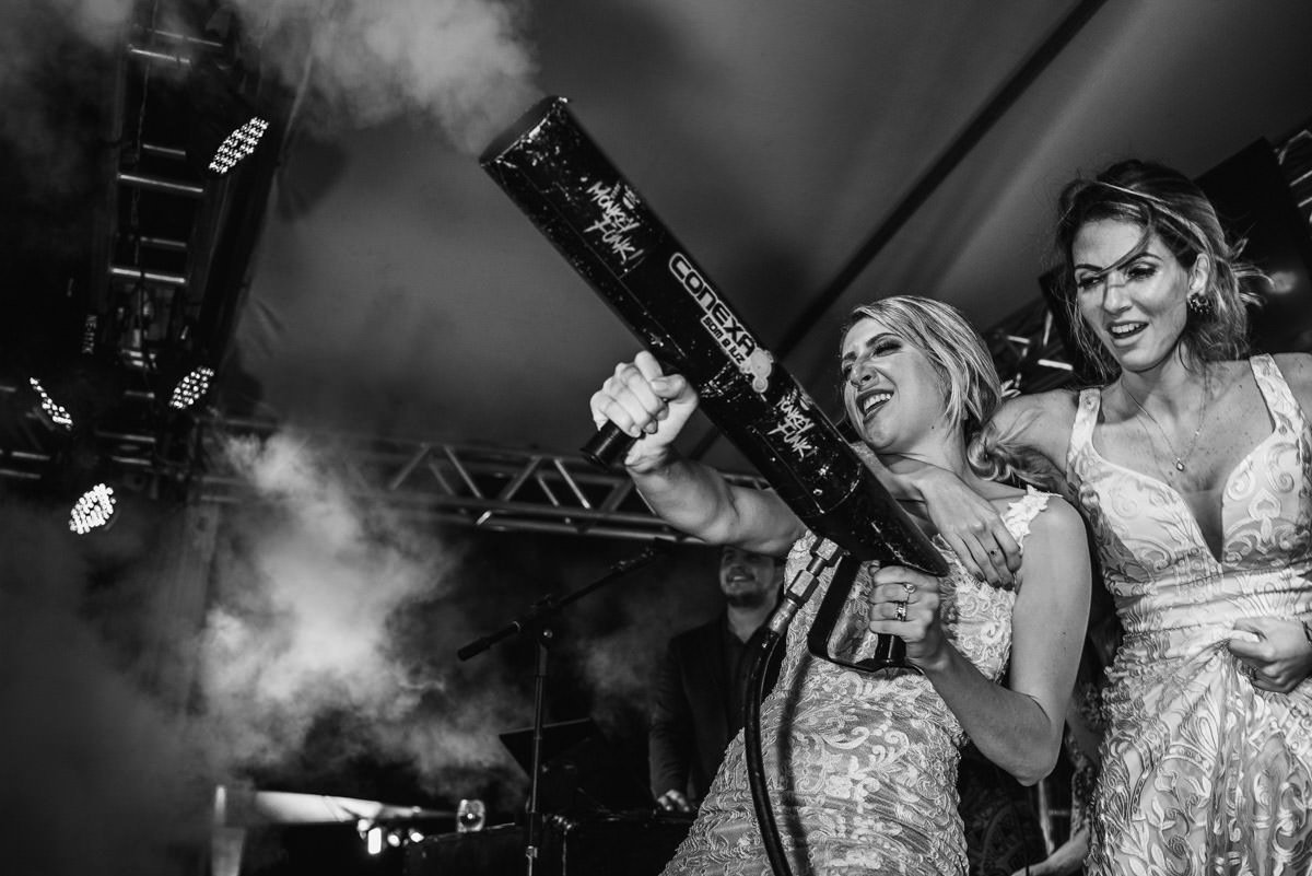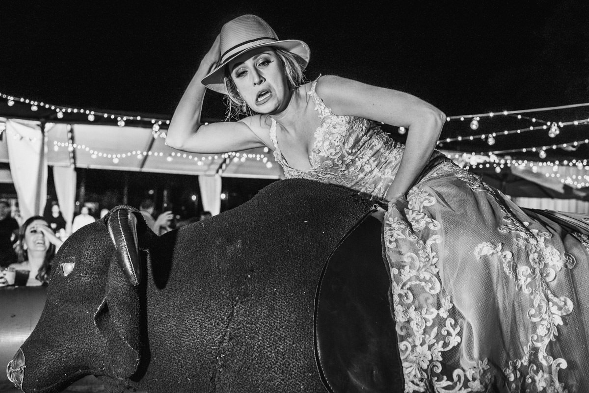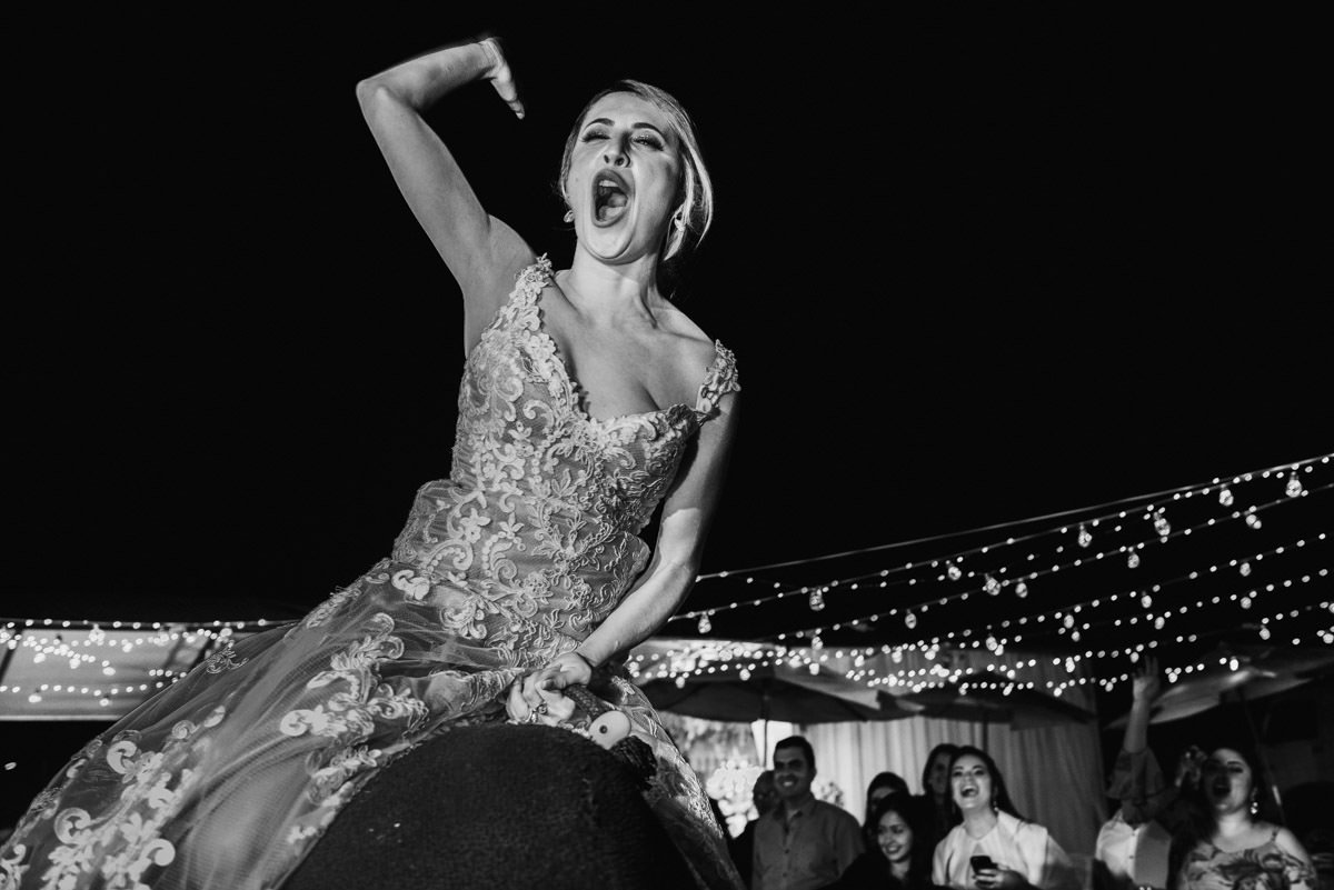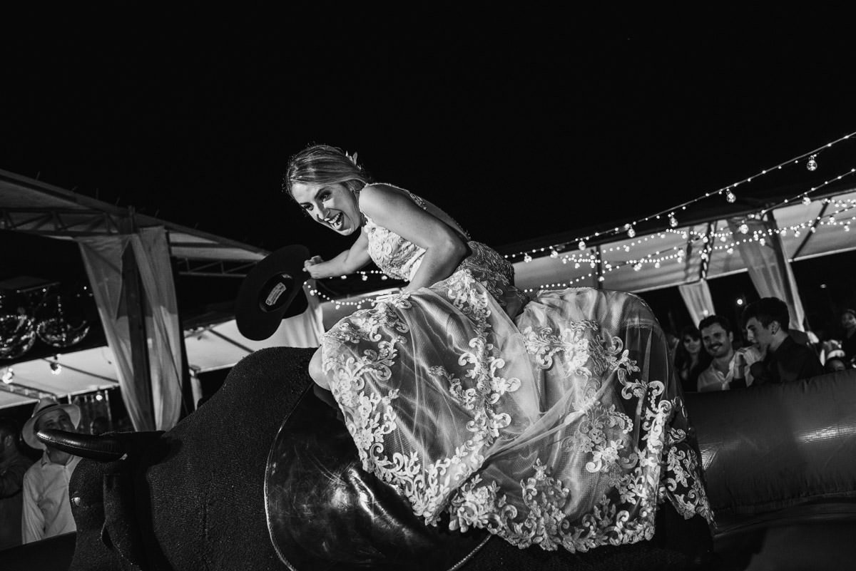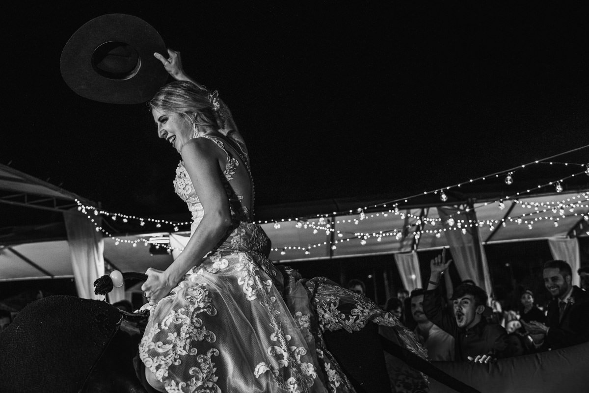 Quando rolou o ensaio de pré-casamento da Mari e do Renan, ficamos super ansiosos pro dia do casamento em Itabira, já que eles tinham contado tudo que ia rolar no dia. Touro mecânico, Mari equilibrando um copo na cabeça, “bazuca” de fumaça e, claro, muita animação.