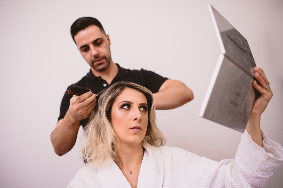 A propósito, sempre que um casal pergunta isso pra gente, achamos super válido que os dois se arrumem no local do casamento (claro que se a cerimônia e a festa forem no mesmo lugar – e se houver espaço pros dois). Além de facilitar muito a logística, conseguimos fotografar também os bastidores do casório, que enriquecem muito o trabalho.