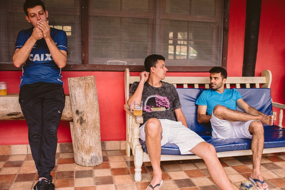 Chegamos em Itabira no dia anterior, o suficiente pra preparar os equipamentos e dar uma volta na cidade, pra comer uma pizza e tomar um choppzinho. Delícia de cidade, diga-se de passagem! Como normalmente fazemos em todos os nossos casamentos, nos preparamos pra chegar lá cedinho e acompanhar o dia deles, já que a gente sabia que tinha rolado um esquenta na noite anterior e todos os padrinhos, madrinhas e a família dos dois estava lá no Sítio da Cachoeira (a maioria da galera dormiu lá, inclusive).