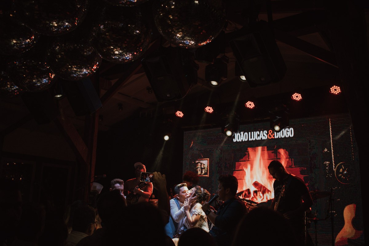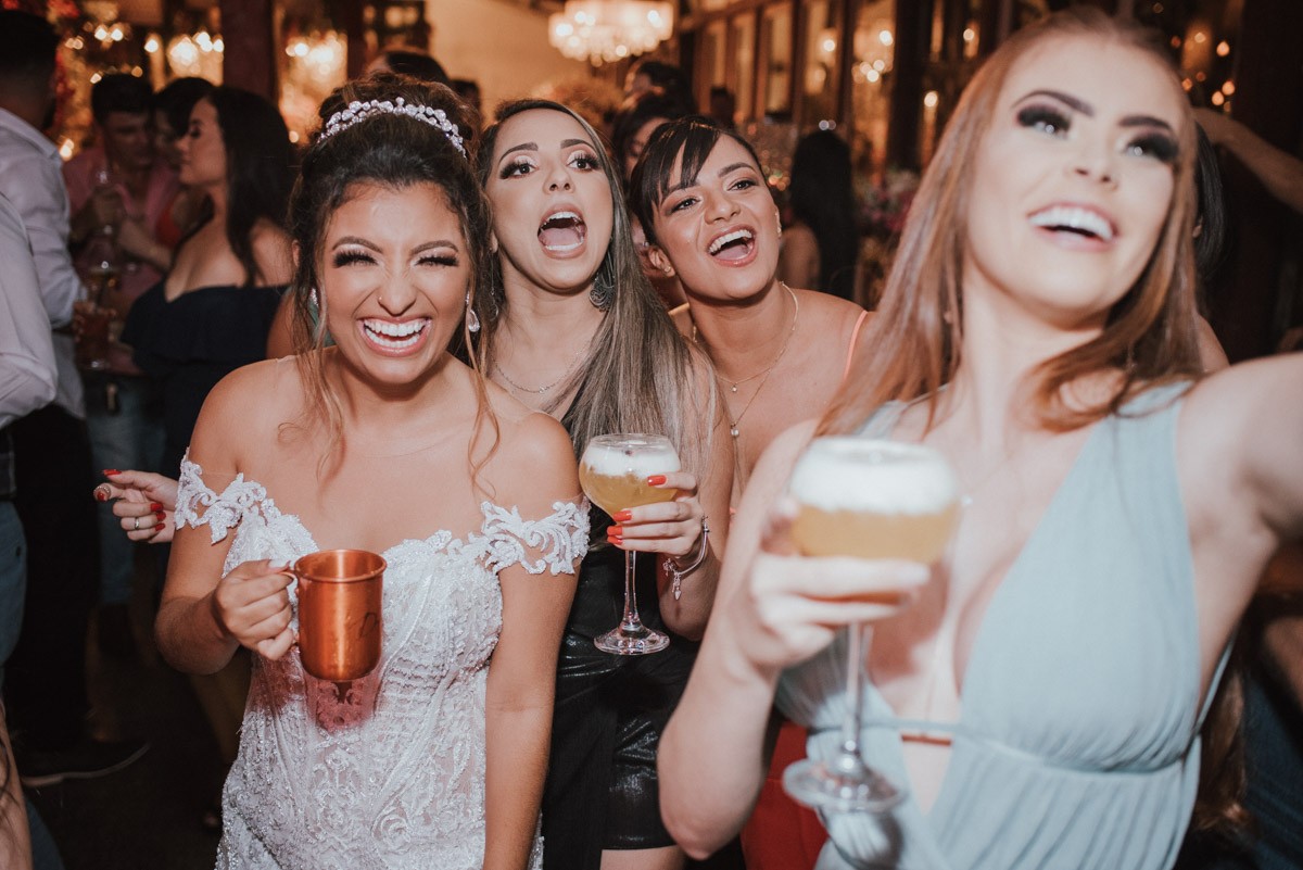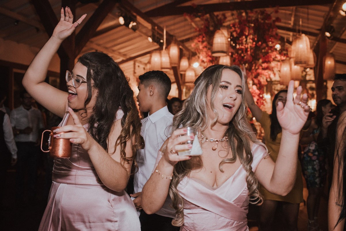 Festa: O salão foi decorado com tons de marsala e dourado, combinando elegância e aconchego. A banda animou a pista, e os noivos dançaram até o amanhecer!