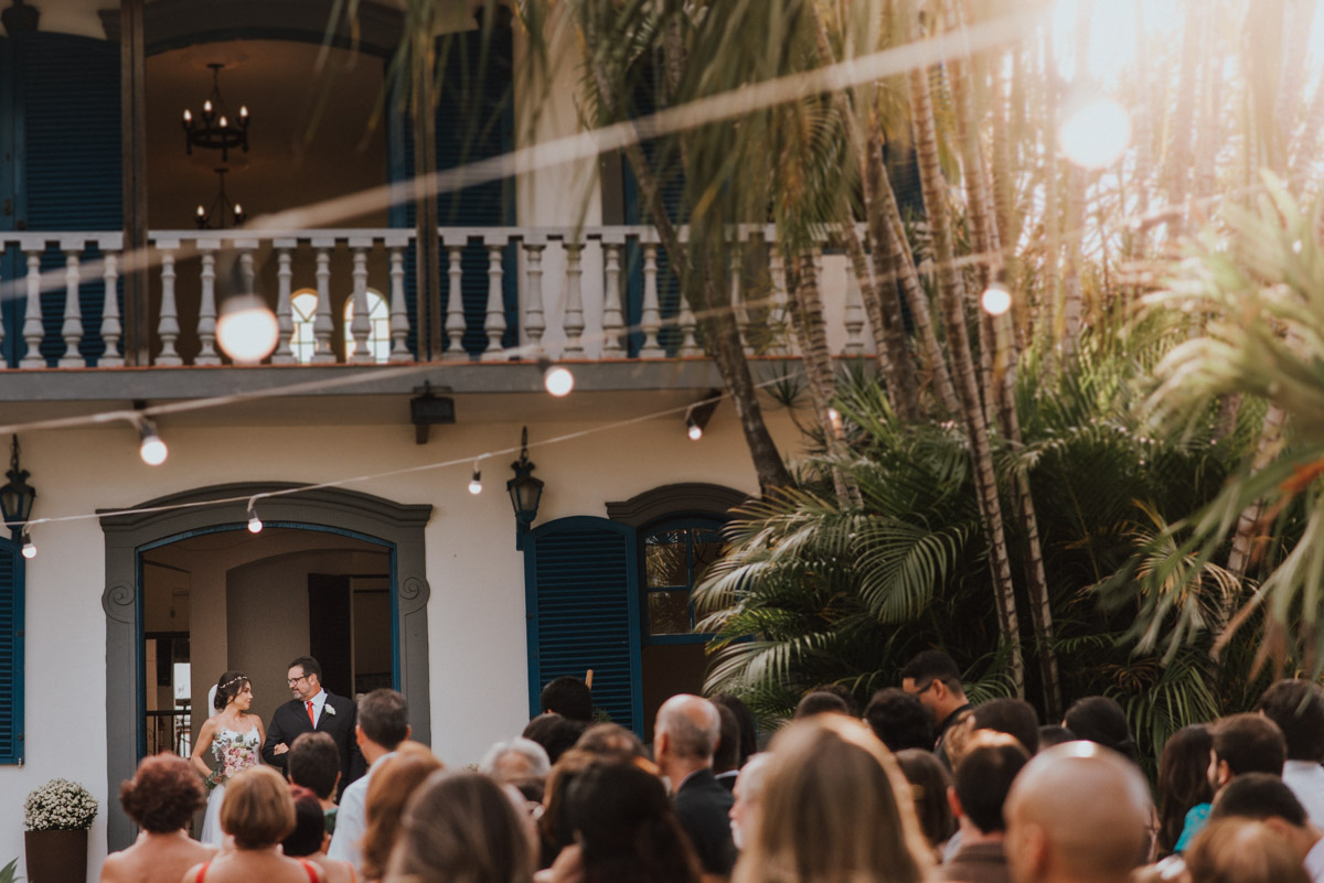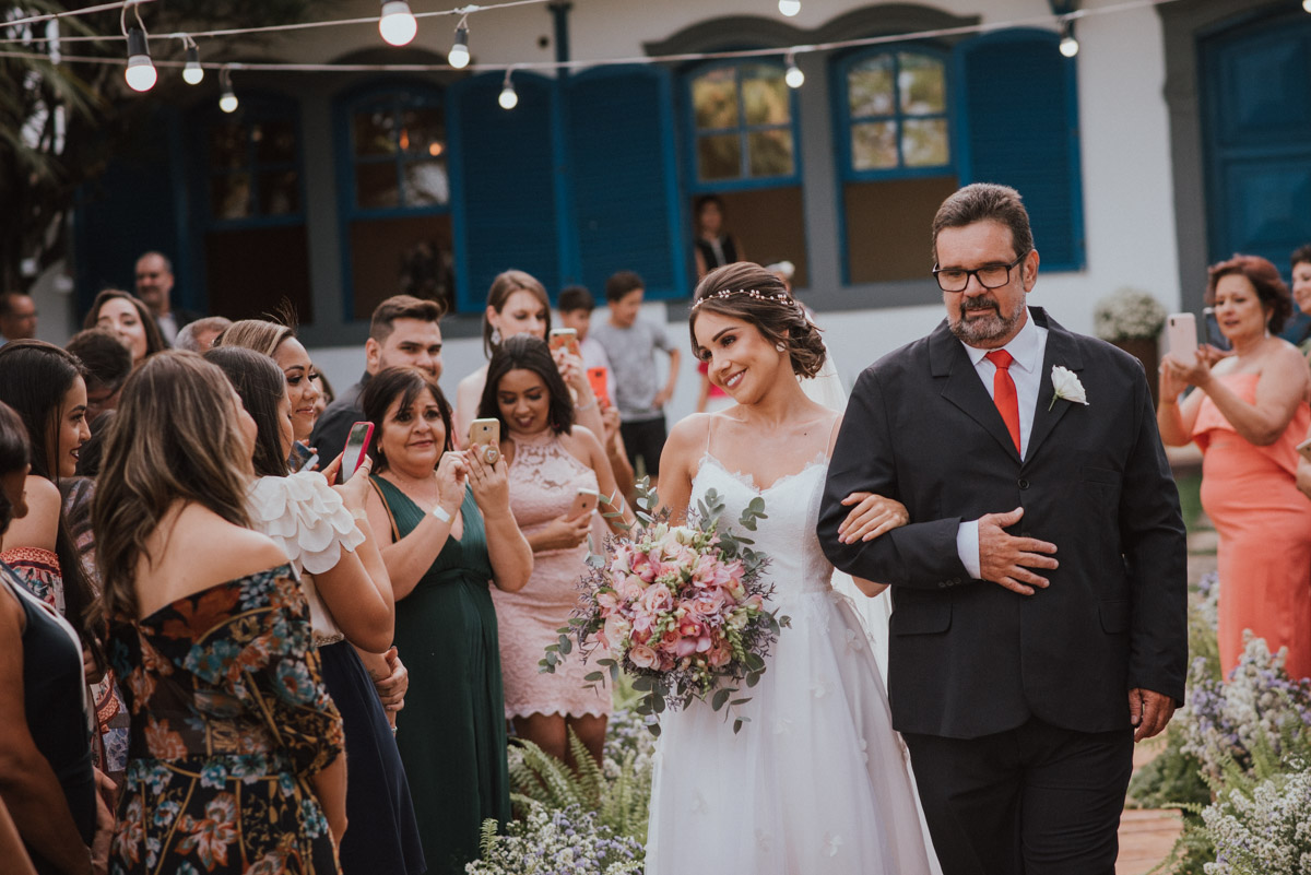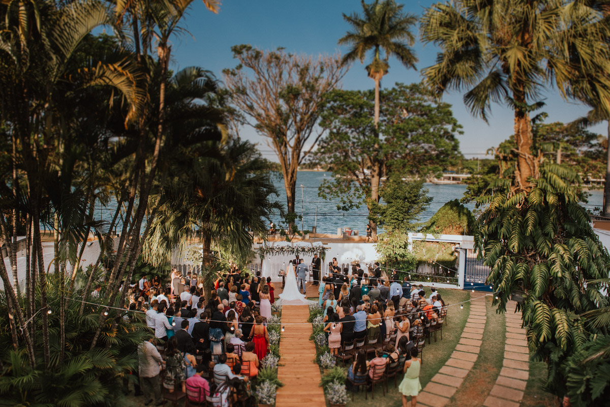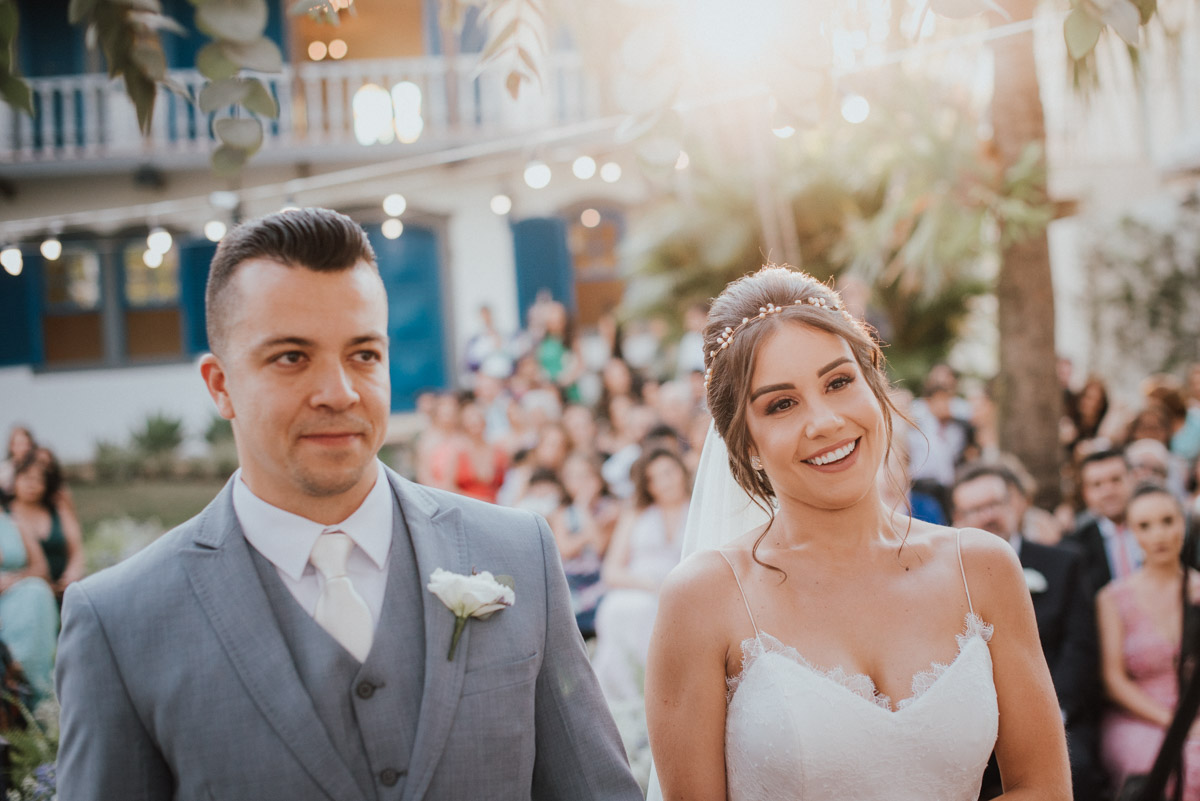 O casamento da Dani e do George foi um exemplo perfeito de como um casamento no pôr-do-sol pode ser mágico quando bem planejado. Eles seguiram nossas recomendações e marcaram a cerimônia para as 15h30. No convite, colocaram 16h, justamente para dar uma margem de segurança. O resultado? Uma cerimônia linda, com luz suficiente para todas as fotos externas e um final ainda iluminado pelo brilho suave do crepúsculo.