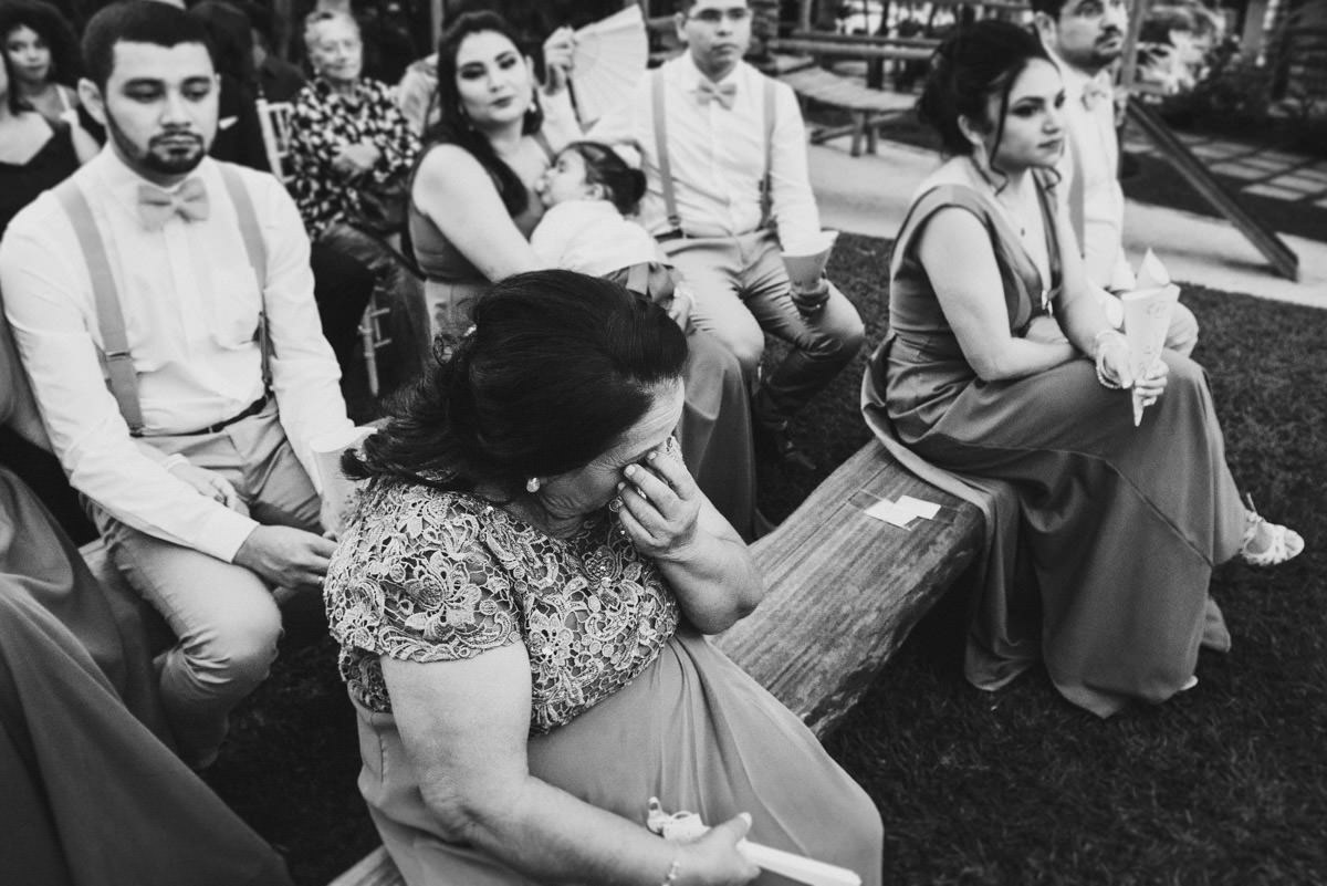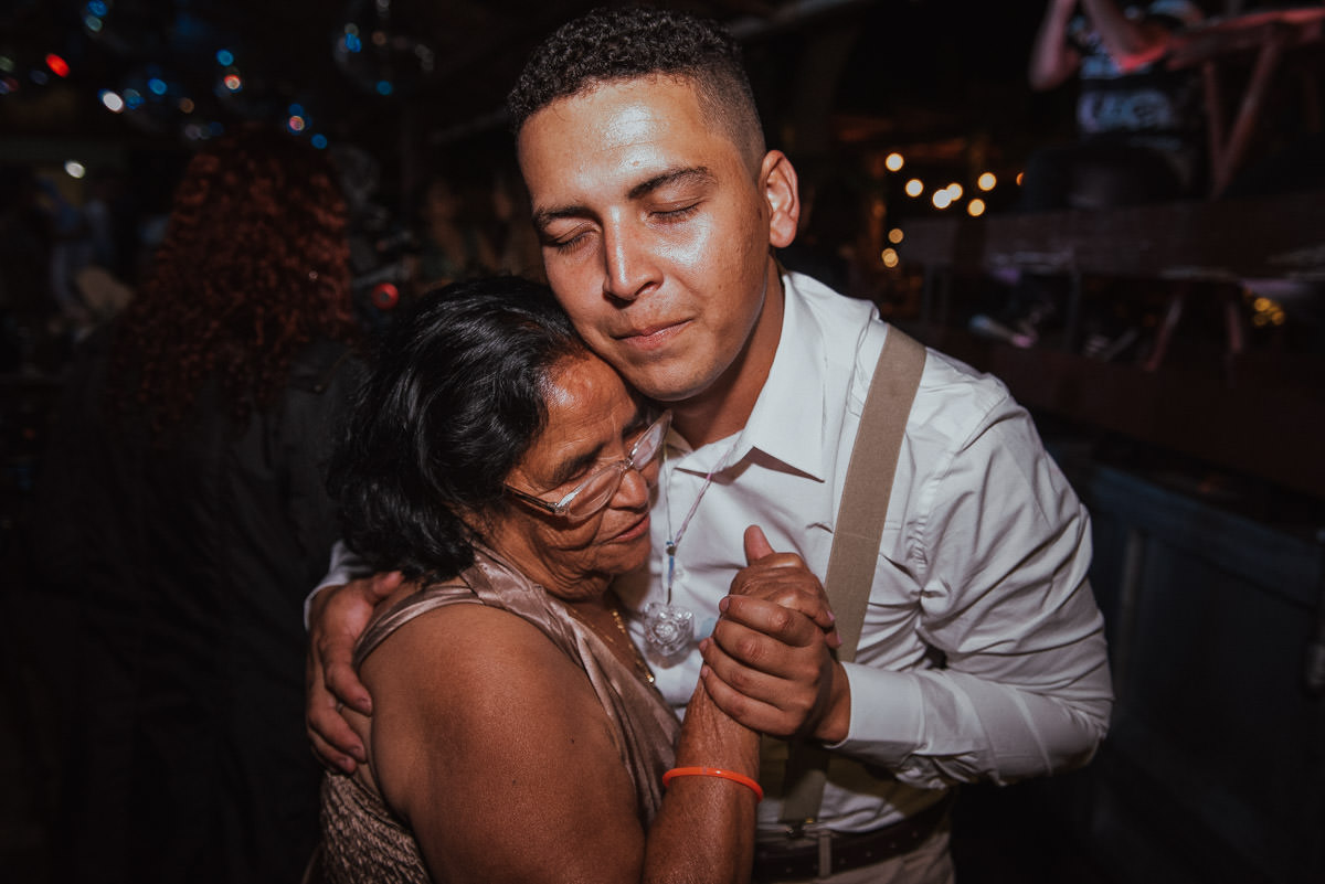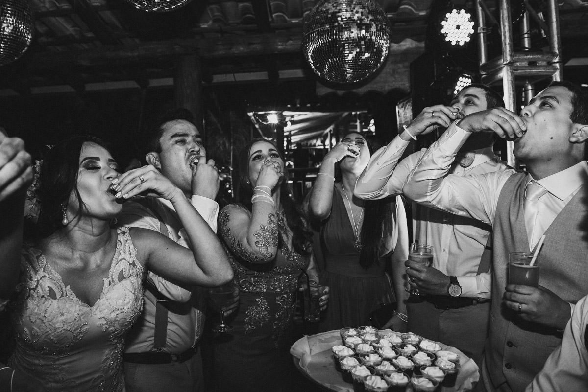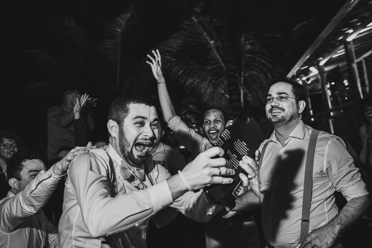 - Os convidados emocionados sob a luz mágica do pôr do sol.