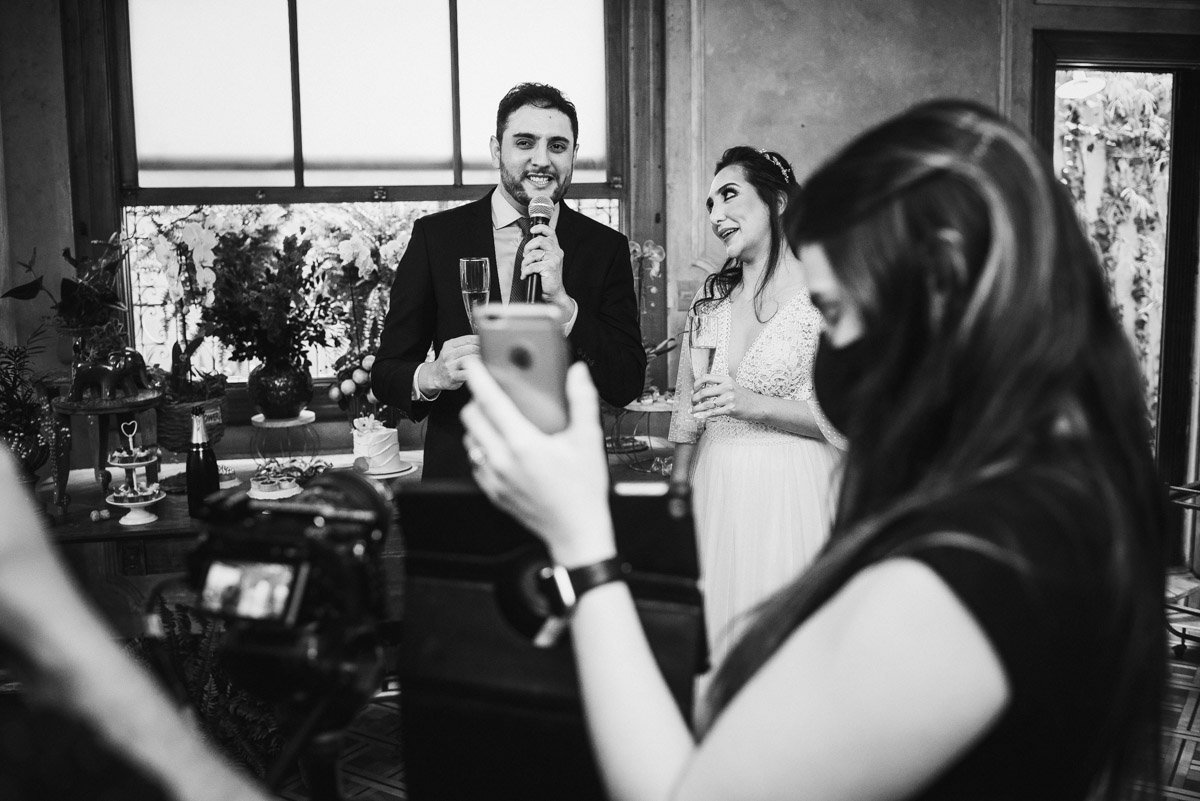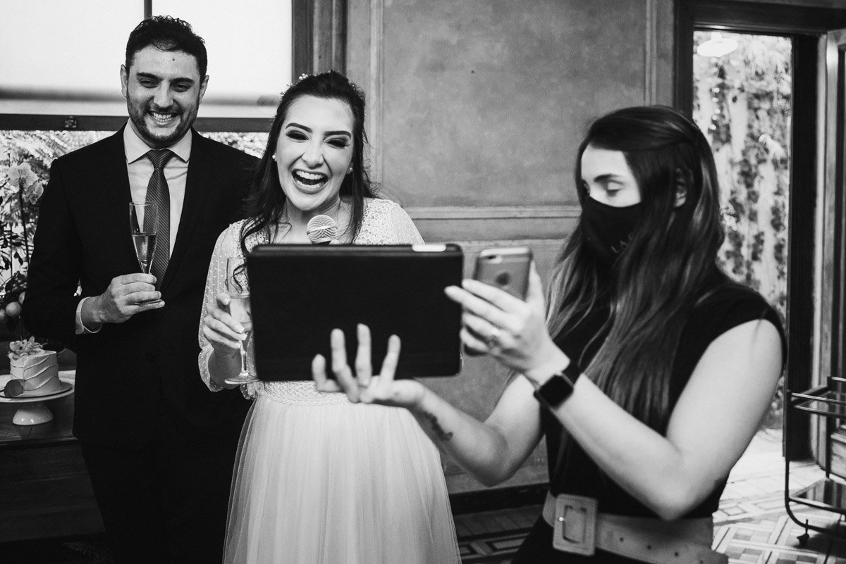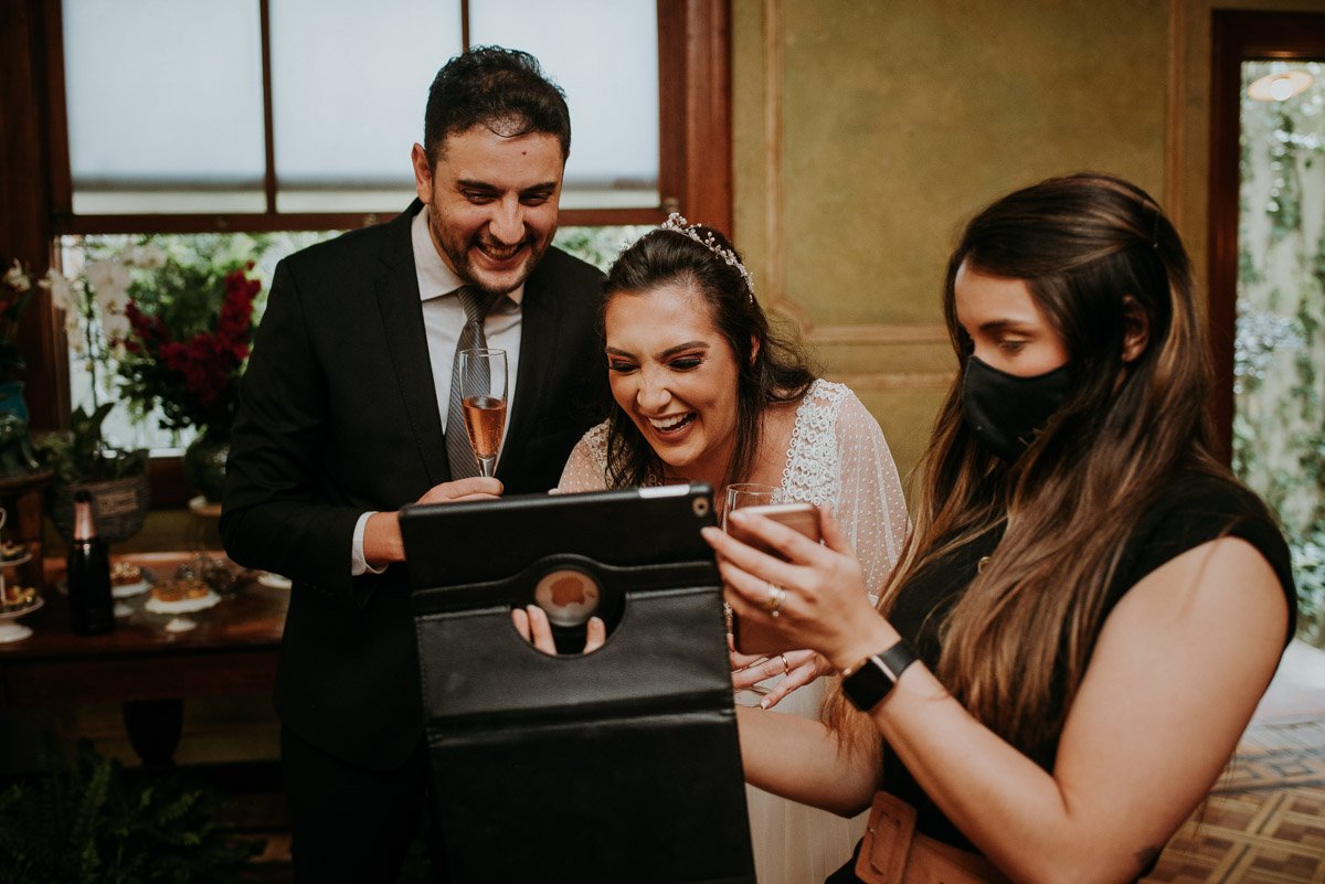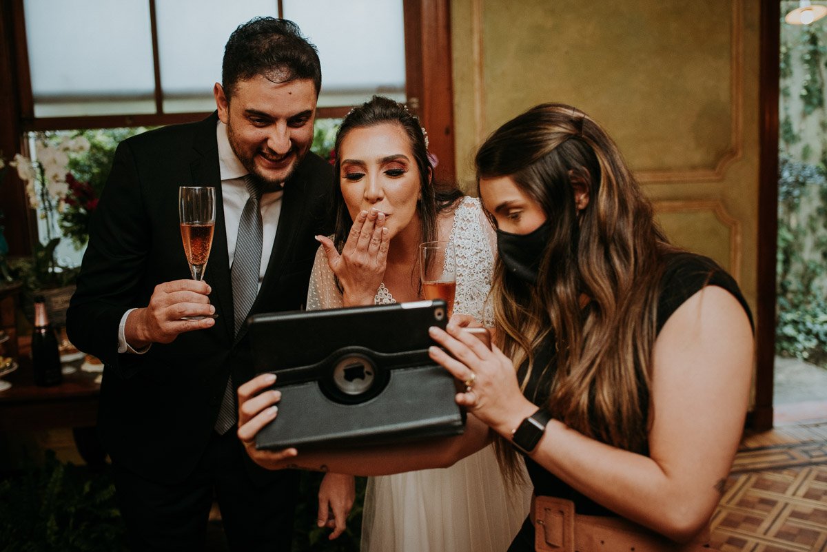 Em tempos de pandemia, a maioria dos casais sofre com um problema de logística grande: alterar a data em função da quarentena. Isso fez com que muitos casamentos fossem passados para 2021 e, assim, deixassem vagas datas importantes para o casal. A Bella e o Bernardo, por exemplo, precisaram passar por isso. E aí 2020, que marcaria a união dos dois, ficou com aquele gostinho vazio. Mas, para não deixar passar em branco, surgiu a ideia do Elopement Wedding! Uma maneira segura e muito linda de celebrar a união civil dos dois. Sim, foi um casamento civil, transmitido ao vivo para mais de 80 ligações simultâneas! Foram muitas pessoas acompanhando esse momento único e especial dos dois.