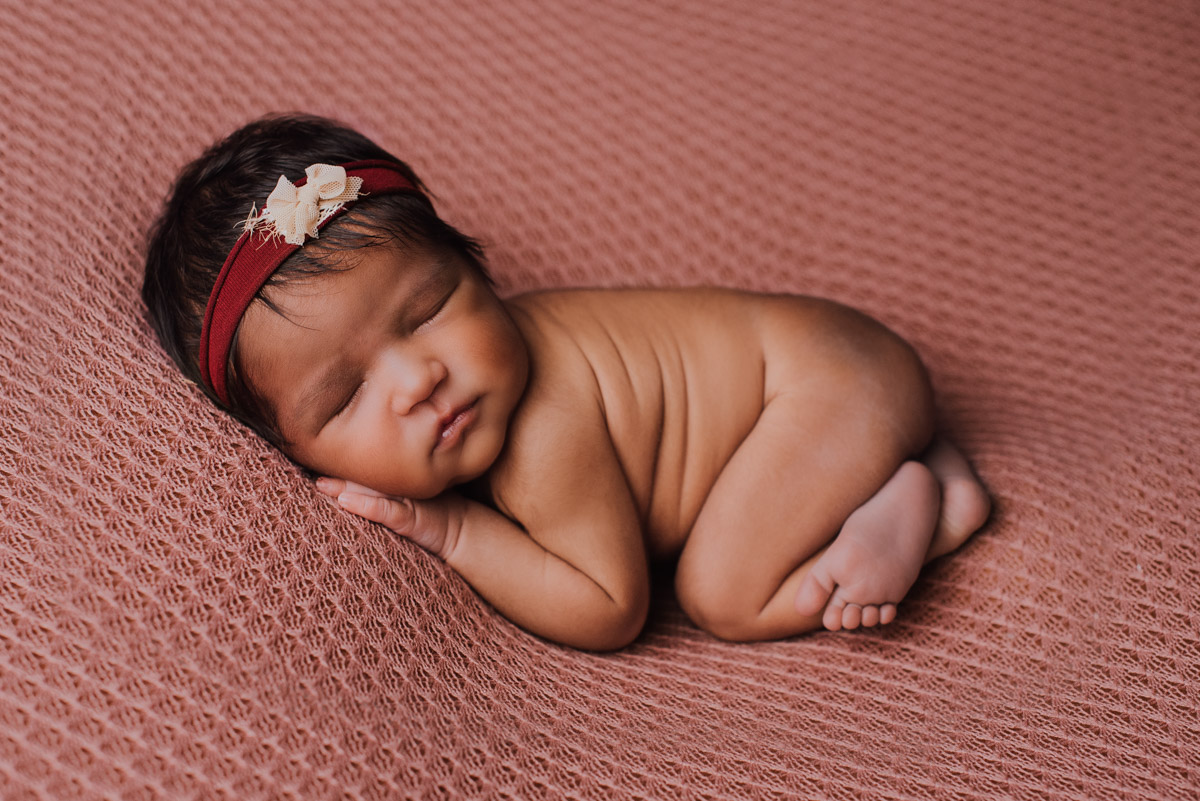 O ensaio newborn é realizado entre o 5º e o 15º dia de vida do bebê – período em que ele ainda mantém aquela posição aconchegante do útero e dorme profundamente, permitindo poses clássicas e cheias de significado.