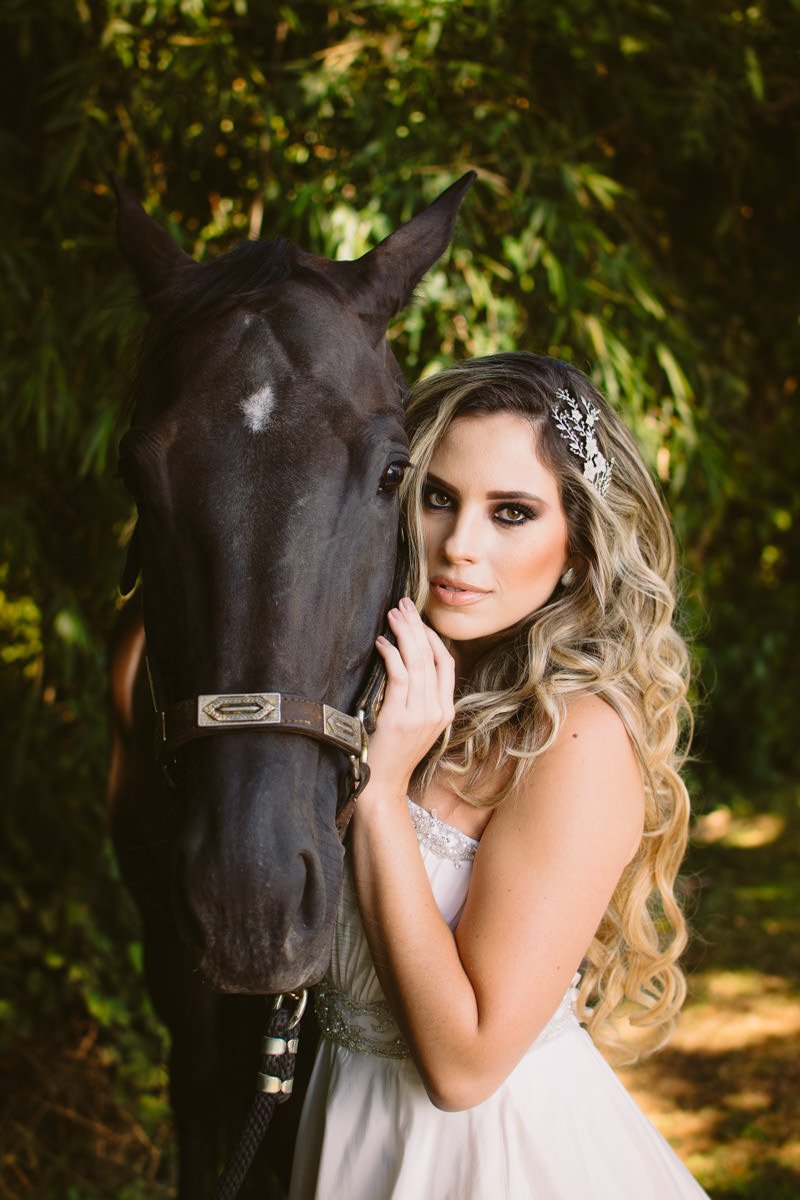 Como o editorial foi realizado em um haras, nada mais simbólico do que cavalos, não é mesmo? O Haras Imperial possui vários animais, que ficam lindos num ensaio temático!